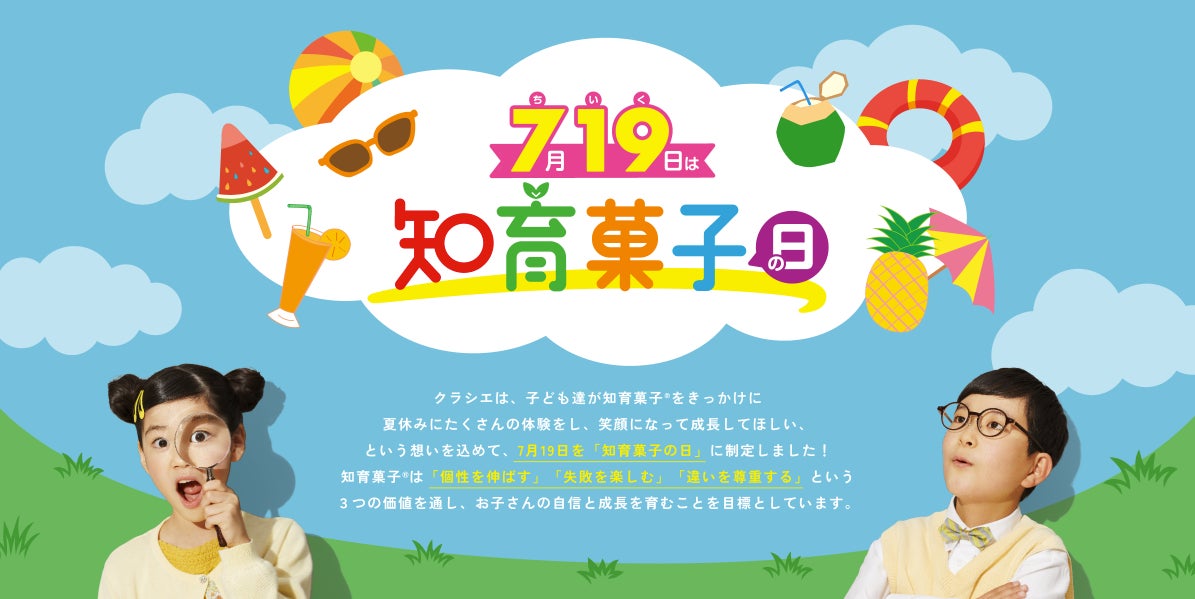 クラシエフーズは、子ども達が知育菓子®をきっかけにして、夏休みにたくさんの体験をし、笑顔になって成長してほしい、という想いを込めて、7月19日を「知育菓子の日」に制定いたしました。