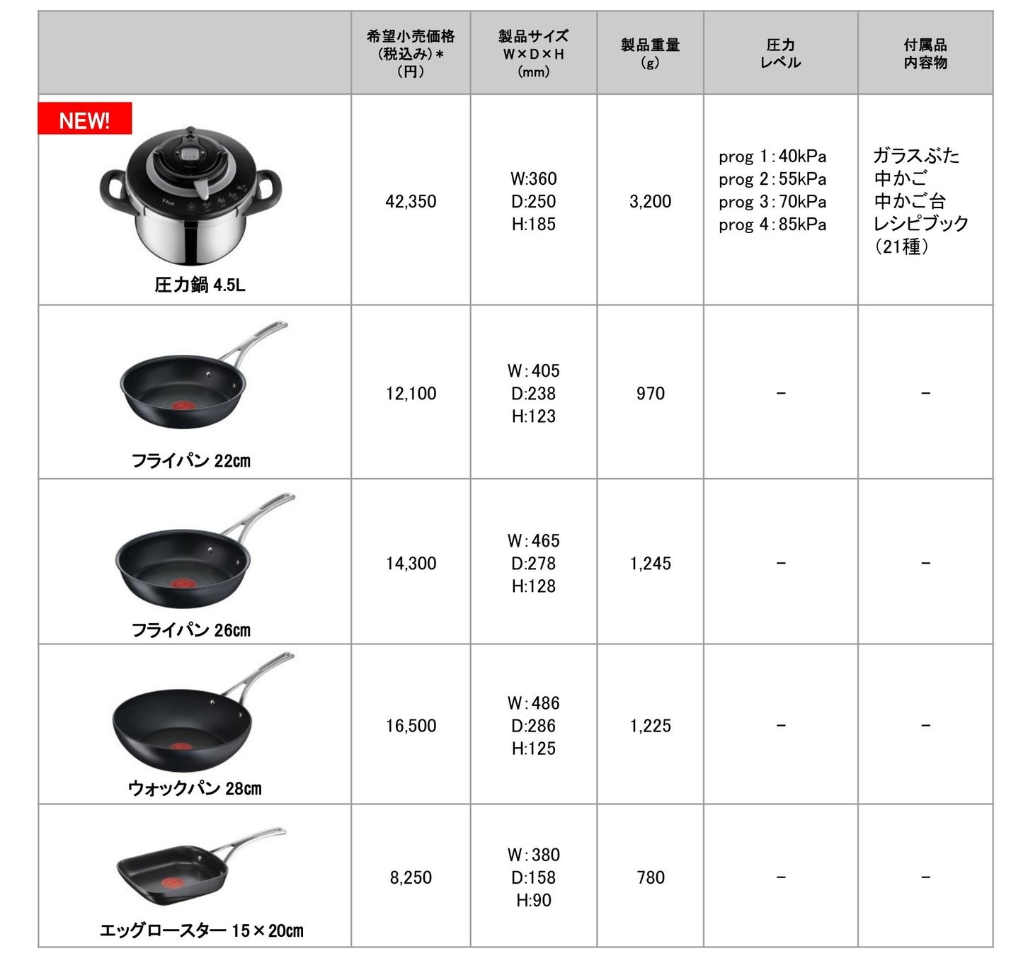 「ティファールエクスペリエンス+」ラインナップ