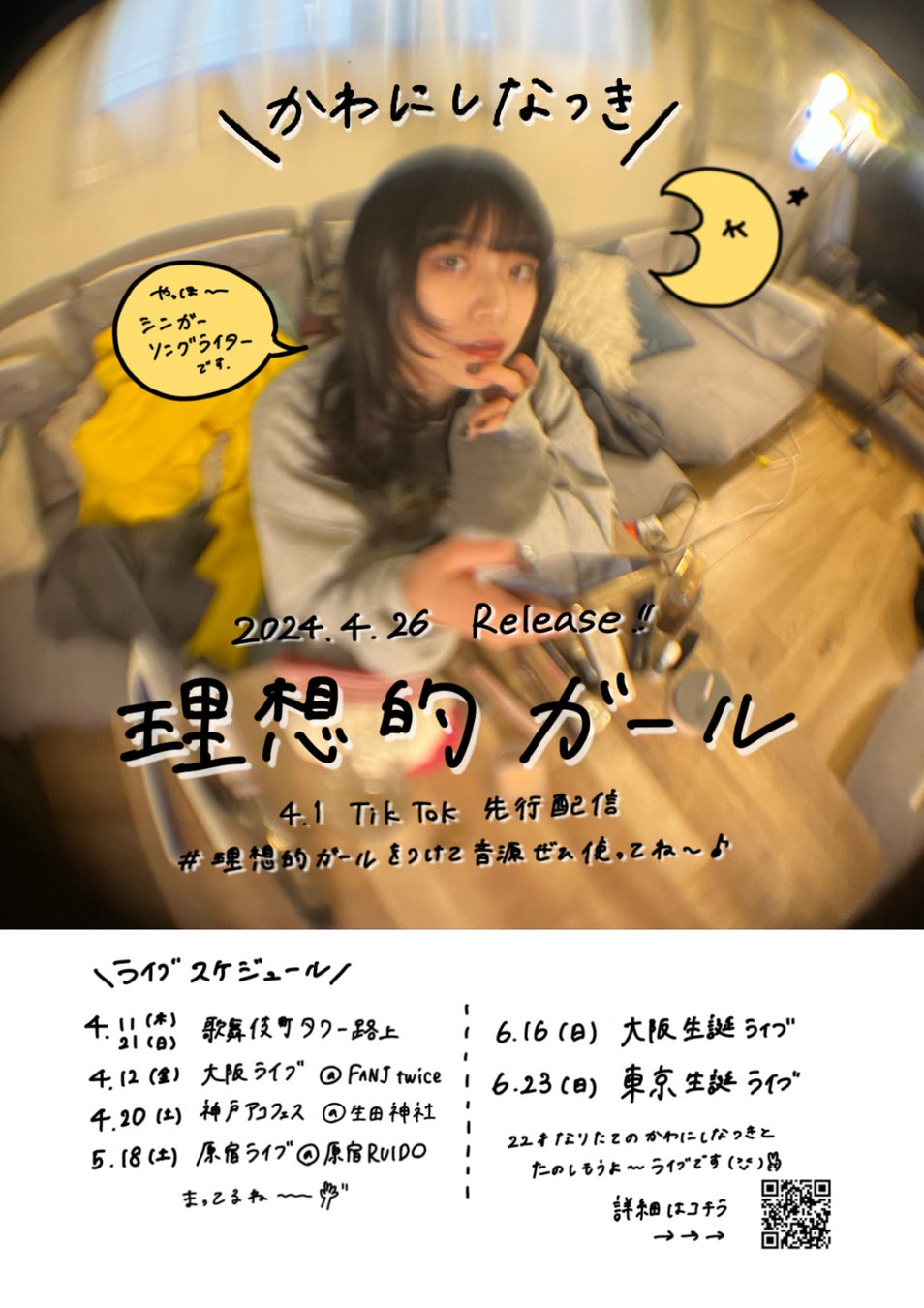 シンガーソングライター・かわにしなつき、デモ曲がSNS総再生回数500万回超えの新曲「理想的ガール」をTikTok先行配信。6月にバースデーライブ開催も決定!