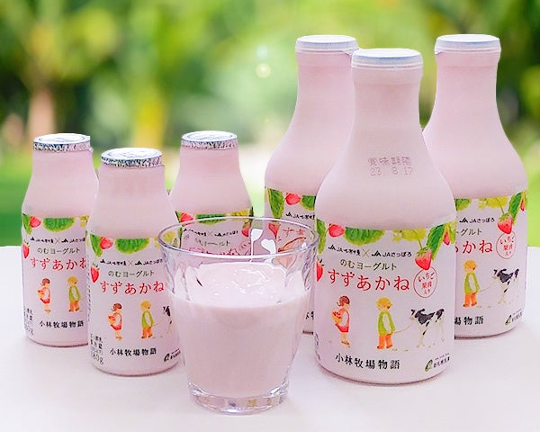 江別市にある「小林牧場」の生乳で作るヨーグルトに、適度な酸味と甘さのバランスが良い「すずあかね」を丸ごとピューレーにして加えたのむヨーグルトです。とろみ・酸味・香りを引き出した濃厚なヨーグルトと爽やかな甘さのすずあかねが、共においしさを際立たせています。