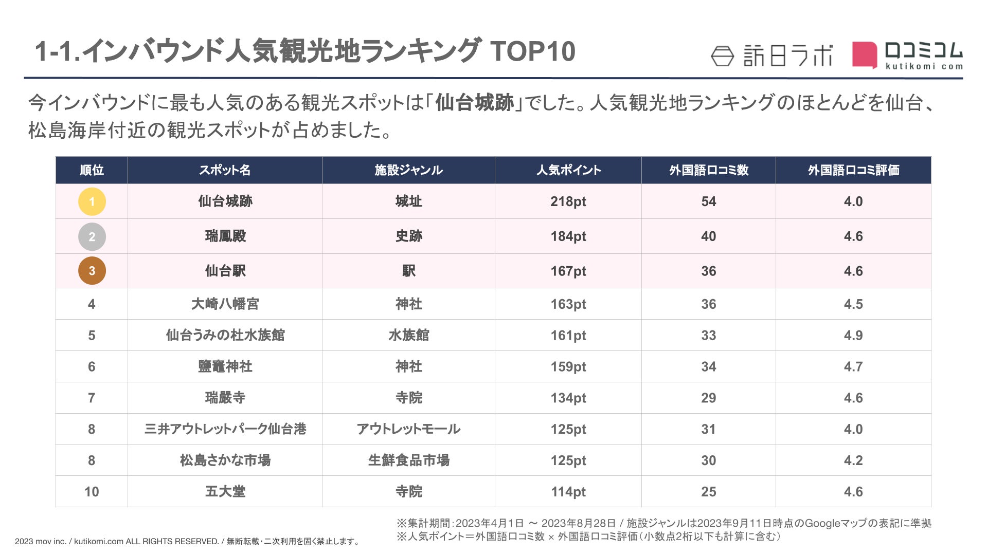 【独自調査】インバウンド人気観光地ランキング宮城県編:コロナ後 最新の訪日客の支持を集めたスポットTOP10を発表 #インバウンドMEO