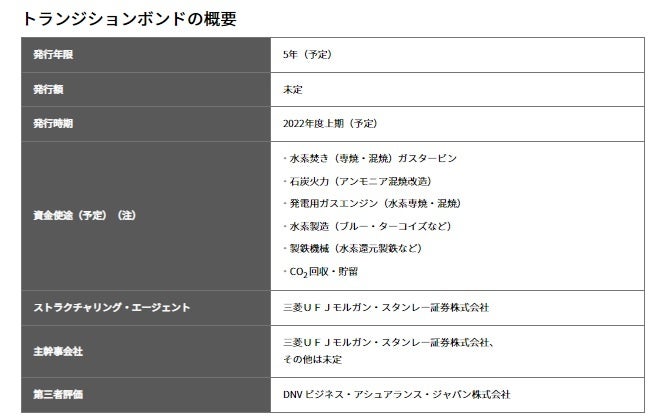当社は、本モデル事例に基づく国内公募形式のトランジションボンドを2022年度に発行する予定です。