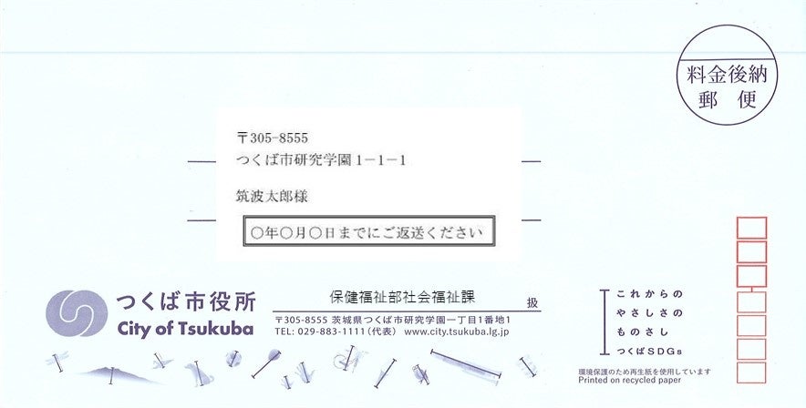 つくば市は、令和2年から3年にかけて実施したナッジを活用した取り組みについて、環境省等が主催する「ベストナッジ賞コンテスト2021」で大賞(環境大臣賞)を受賞しました。この取り組みでは、市民に返送をお願いする通知の封筒に「返送期限」を入れたことにより、前年から返送率が26.5%向上しました。