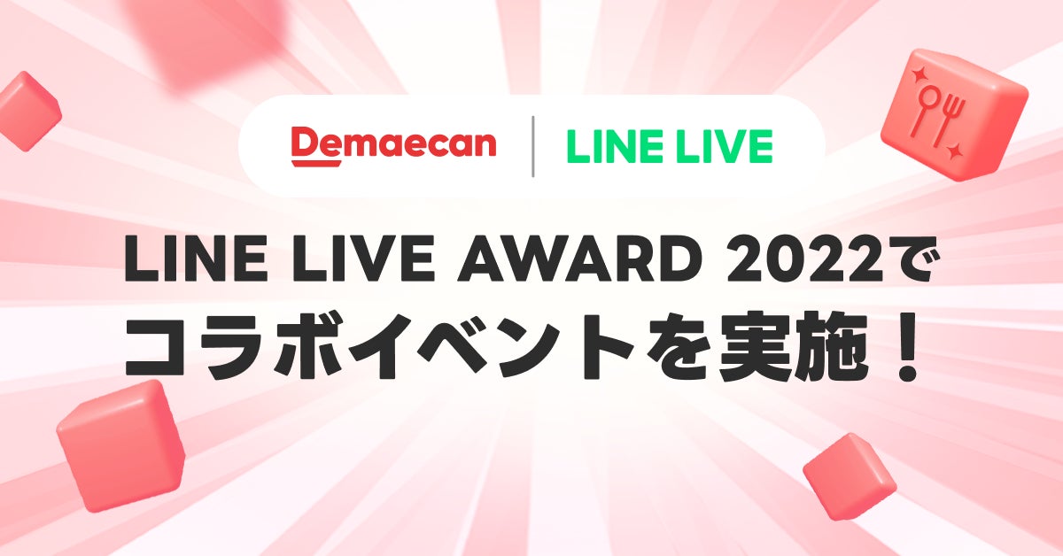 「LINE LIVE AWARD」は、1年を通して活躍したライブ配信者を表彰する年間アワードとして、2018年より開始したライバーの祭典です。このたび「出前館」と「LINE LIVE」では、年間No.1ライバーを決める「LINE LIVE AWARD 2022」において、Demaecanプレゼンツ ベストグルメライバー賞決定戦を2022年11月16日(水)~22日(火)で開催することとなりました。