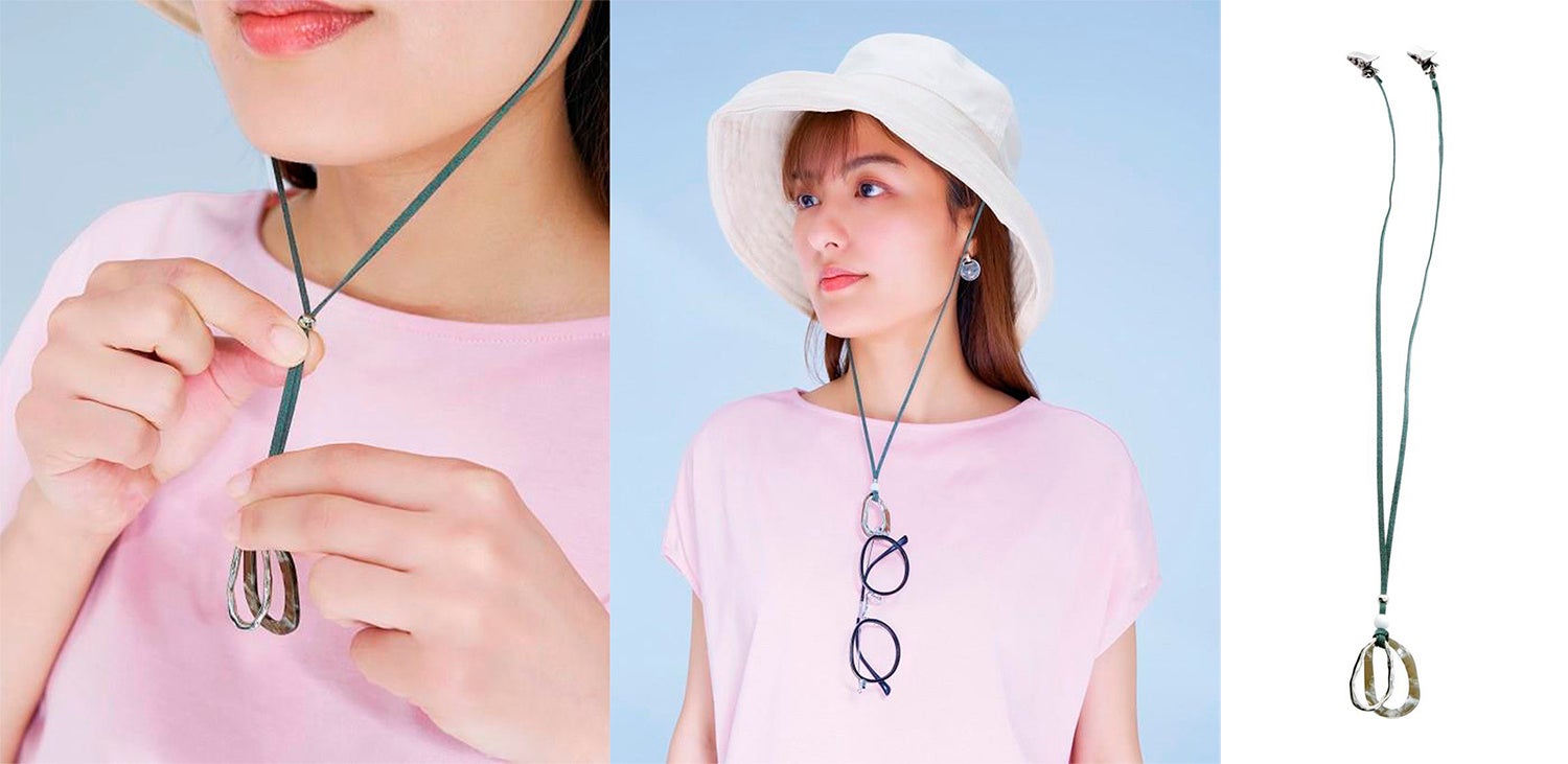 ビーズパーツで長さ調節OK。モチーフ部分にはメガネやサングラスを掛けることも可能。