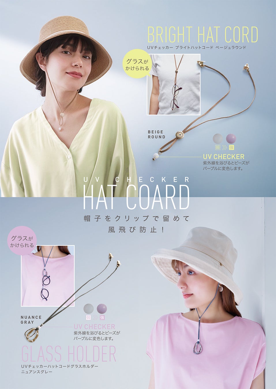 風飛び防止!帽子の汗止めテープにクリップ!「UVチェッカーハットコードグラスホルダー」