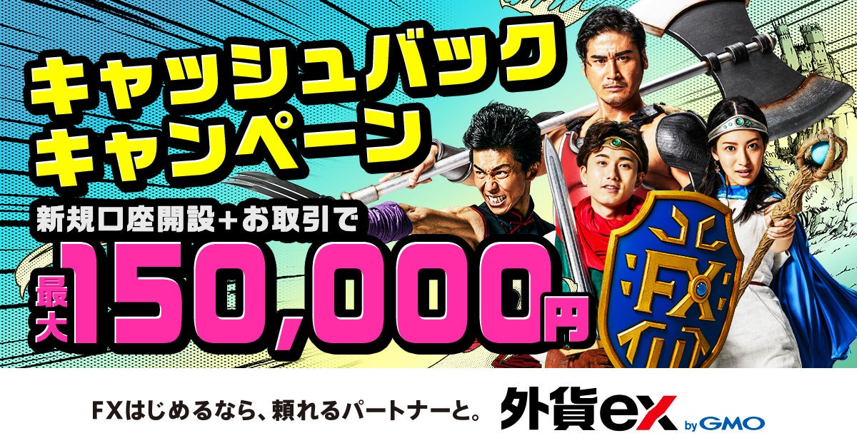 外貨ex byGMO:「新規口座開設キャンペーン開催」新規口座開設+お取引で最大150,000円キャッシュバック!