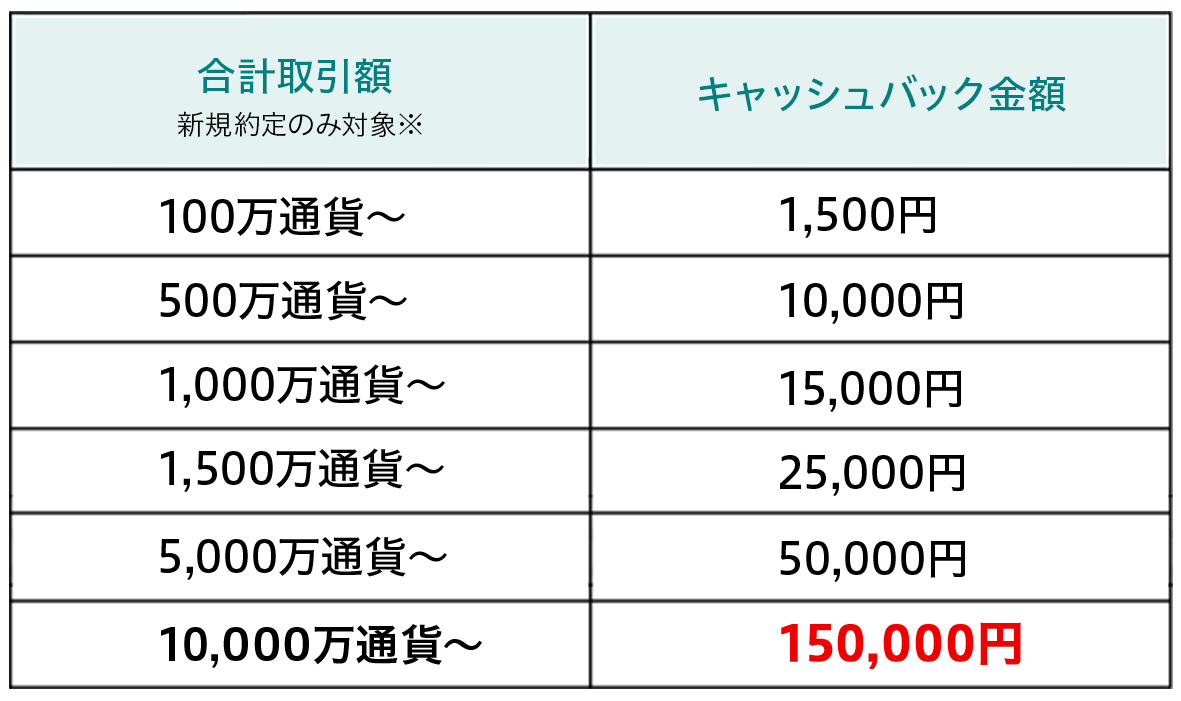 【新規口座開設キャンペーン】新規口座開設&お取引で最大150,000円キャッシュバック
