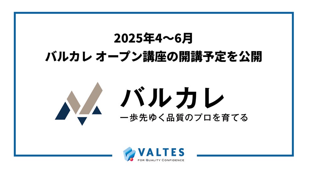 ソフトウェアのテスト・品質向上におけるトータルサポートを提供するバルテス・ホールディングス株式会社(本社:大阪市西区、東京都千代田区、代表取締役会長 兼 社長:田中 真史、以下「当社」)は、同社が提供する品質教育サービス「バルカレ」について、2025年4月以降に開催されるオープン講座の開講予定を公開しました。
