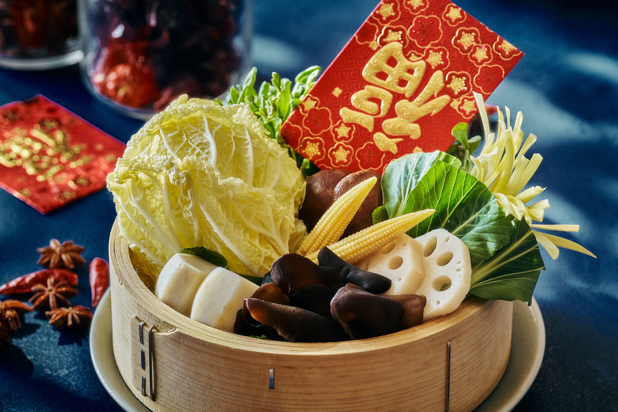 中国各地の代表的な料理や本格的な飲茶をお召し上がりいただける中国料理「チャイナルーム」では、毎年ご好評をいただいている薬膳火鍋が登場いたします。具材には、白身魚、海老、鶏の3種類の団子のほか、キメの細かいサシが入った松阪豚やなめらかな口当たりの十勝ハーブ牛、大ぶりな天使の海老や帆立貝、白菜やチンゲン菜、黄ニラといった国産の野菜など、豊富な食材がラインナップ。山海の幸と、健康に嬉しい多彩な野菜とともに、2種類の自家製スープに絡めてお召し上がりいただけます。身体も温まる薬膳スープは、唐辛子や八角、花椒など9種類の香辛料が入ったスパイシーな麻辣スープと、アヒルや丸鶏などを8時間かけてじっくり煮込んだコラーゲンたっぷりの白湯スープです。中国では火鍋の定番具材である乾燥湯葉や揚げ麩、揚げパン(油条)もご用意いたしますので、スープの旨味を吸い込ませてお召し上がりください。〆にはもちもちした食感が特徴のさつまいも春雨をご提供いたしますので、麻辣スープに絡めて、スープに溶け込んだ旨味や栄養を余すことなくお楽しみください。