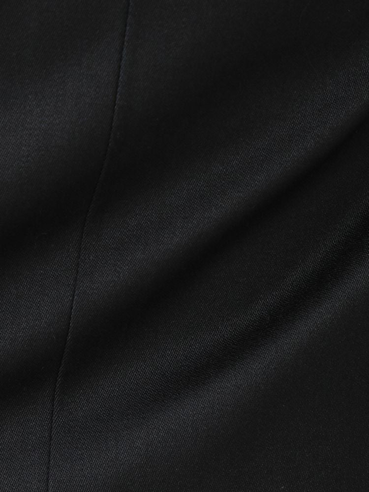 柔らかく肉厚な生地感に上品なツヤが特長のセットアップはパーティーシーンにおすすめ。ウエストラインやパンツシルエットをすっきりさせたスマートな印象の一着です。