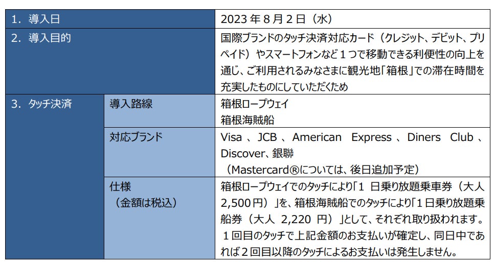 ~タッチ決済は、世界的観光地・箱根ならではのお客さまニーズにあわせた仕様に~