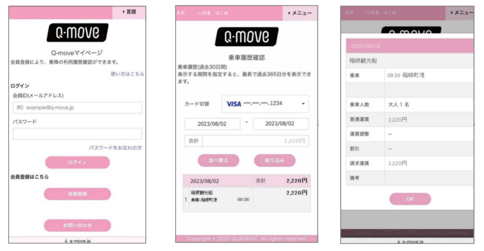 QUADRACのQ-moveサイトにアクセスし、「マイページ」の会員登録手続きが完了しますと確認可能です。