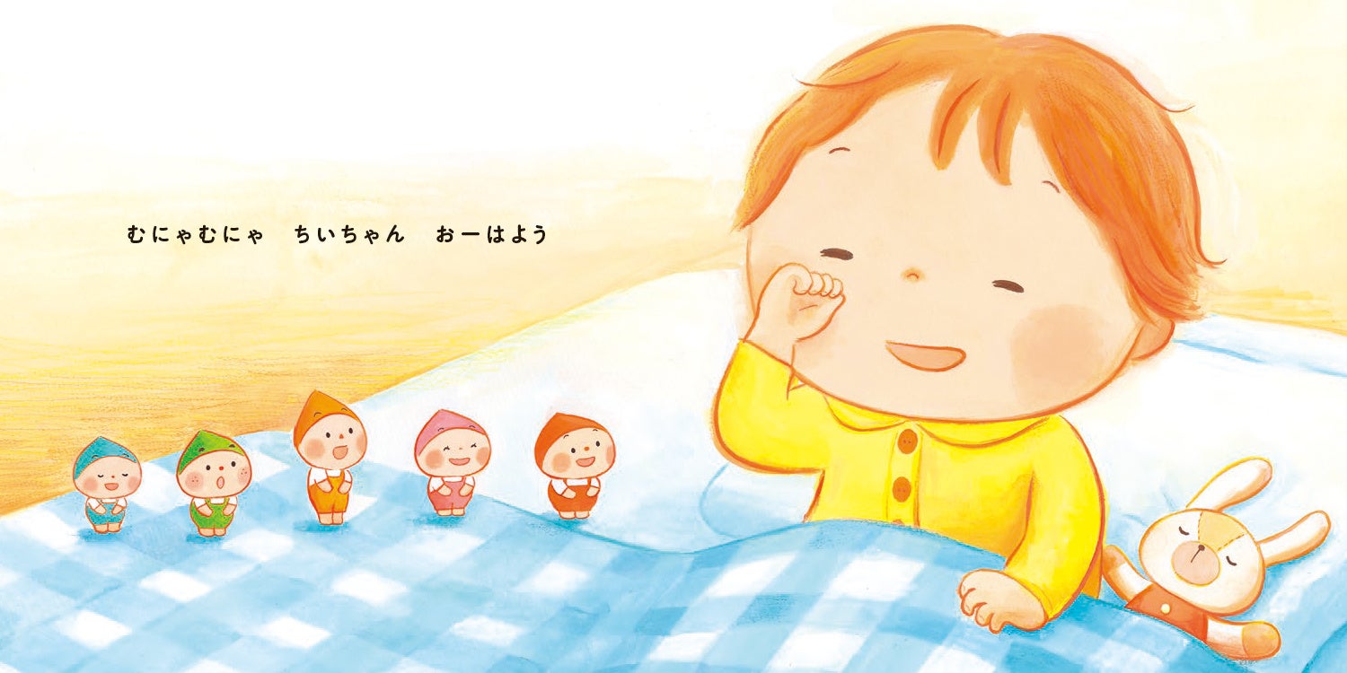 おはようからおやすみまで、ちいちゃんのそばに、とっとここびとがやってきます。