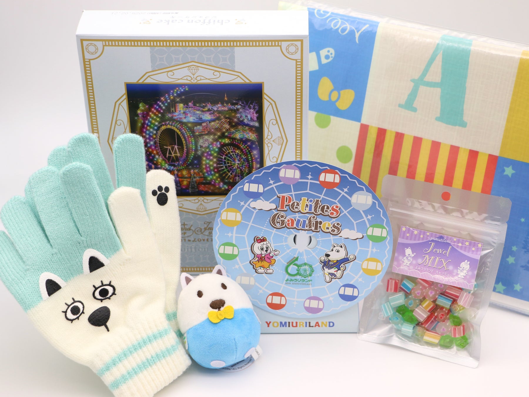 各日10セット限定で、福袋を販売します。お土産として人気の「上野風月堂 観覧車プティゴーフル」やジュエルミネーション限定の「シフォンケーキ」、過去の人気商品など、4,000円相当のお菓子やグッズが入っています。商品はランダムです。