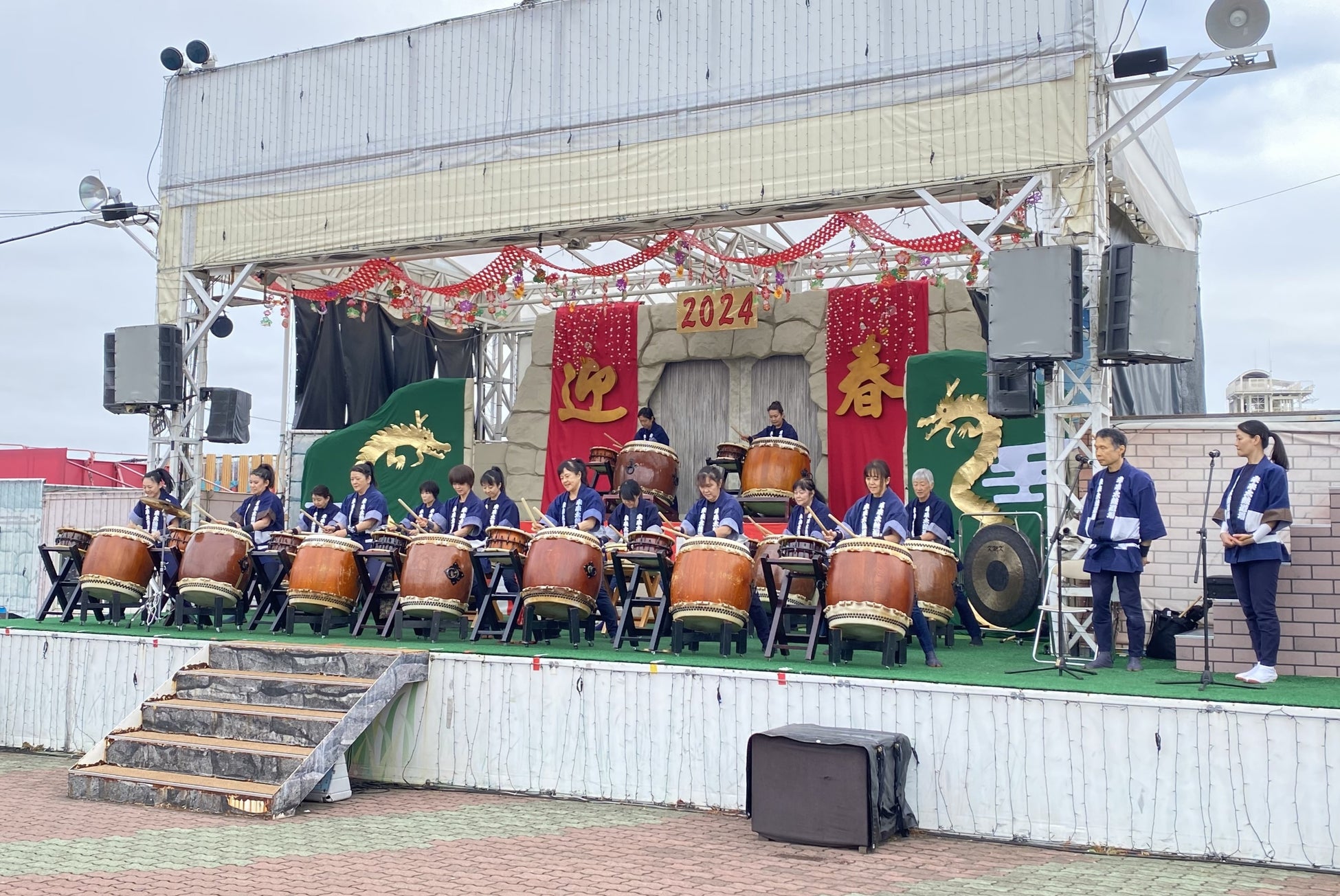 和太鼓グループ「未来太鼓道場」による和太鼓の生演奏。力強い太鼓の音色が新年の遊園地に響き渡ります。