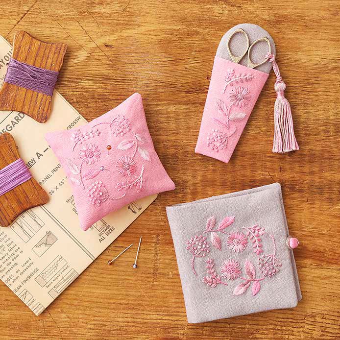 刺繍の基本、基本のステッチ、立体刺繍の基本の解説や、刺繍が初めての方でも取り組みやすい作品をたくさん掲載しています。刺繍した布を日常づかいの小物に仕立てたり、額に入れてインテリアにしたり。立体刺繍のアクセサリーは大人の装いにぴったり。