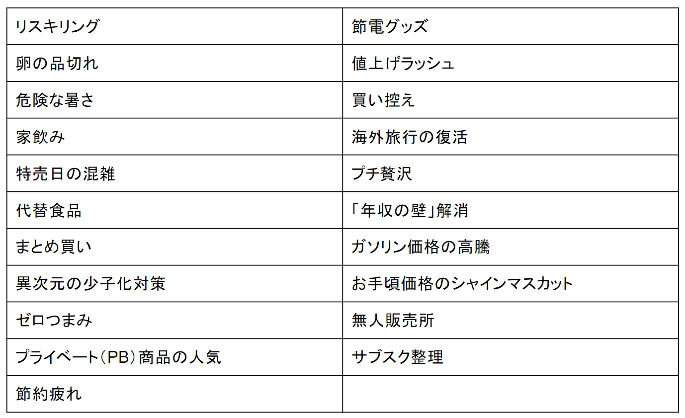 合計 1 万人以上のユーザー回答の結果、1 位「値上げラッシュ」、2 位「ガソリン価格の高騰」、3 位「危険な暑さ」、4 位「卵の品切れ」、5 位「異次元の少子化対策」が選出され、これらを「くらしのキーワード 2023 」として発表いたします。
