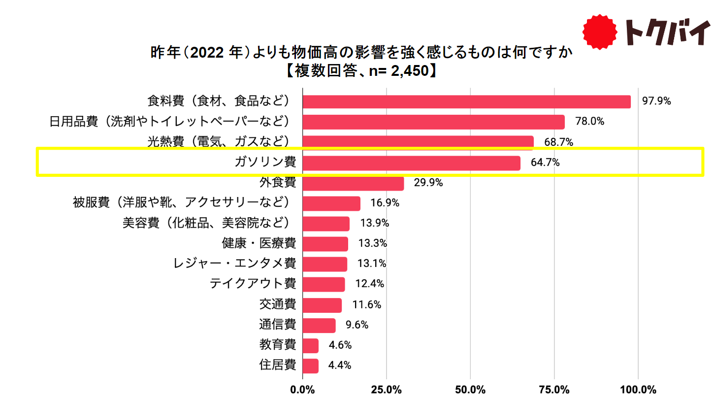 行動制限の解除もあり、外出時のガソリン代を気にする声が多数。トクバイユーザーも「昨年より物価高の影響を感じる」と 6 割以上が回答。