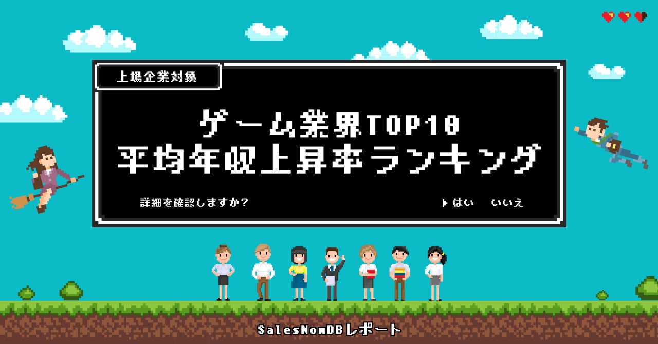 ゲーム業界、平均年収上昇率ランキングTOP10を発表!/SalesNow DBレポート