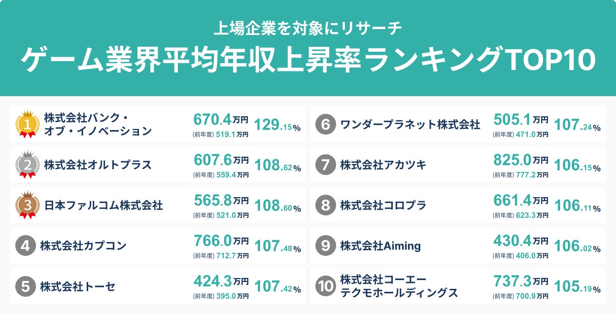 ゲーム業界平均年収上昇率ランキングTOP10について