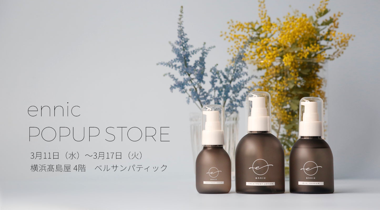 美容室チェーンを約370店舗展開する株式会社アルテジェネシス(横浜市中区/代表取締役社長 吉村 栄義)は、ヘアケア&スキンケアブランド「ennic (以下、エニック)」のポップアップストアを、横浜髙島屋4階「ベルサンパティック」店内にて、2026年3月11日(水)~3月17日(火)の期間限定でオープンいたします。本ポップアップストアは、2025年9月に横浜髙島屋で開催した際に好評をいただいたことを受け、第2回目の開催が決定しました。