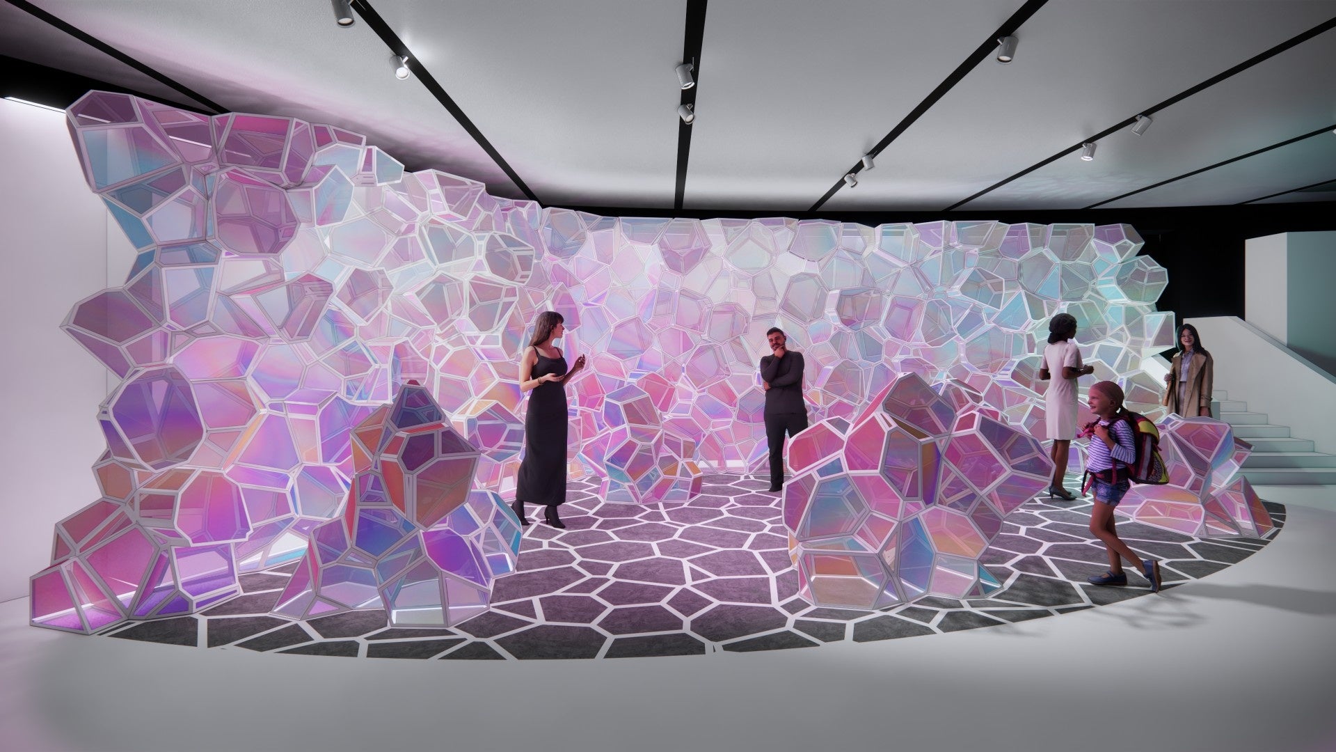 今回のデザインは、構造物を宇宙に運ぶために小さく折りたたんでロケットに載せる展開構造物=インフレータブル構造に着想を得たものです。見る方向によって見え方が変わるクリスタルをモチーフに、壁面にも造作を施し、多様な美、個々が考え感じる「真の美」を表しています。