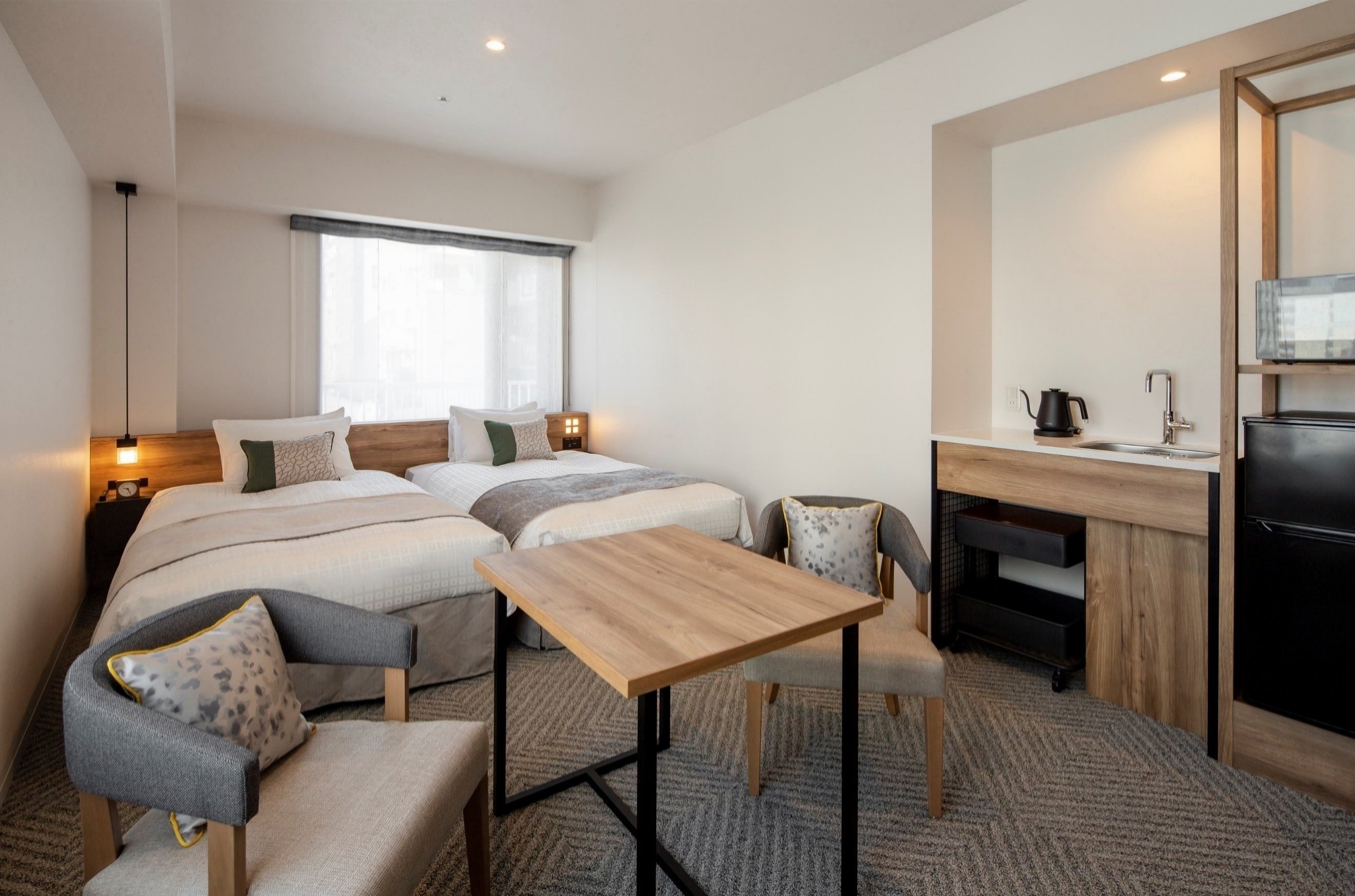 「ビジネス」から「観光」、「転勤等の一時住まい」まで、海外からの旅行者も含め、『1泊でも中・長期滞在でも快適な空間』を提供することをコンセプトとして洗濯乾燥機・電子レンジ・ミニキッチン(一部タイプ)などを客室内に設置したホテルです