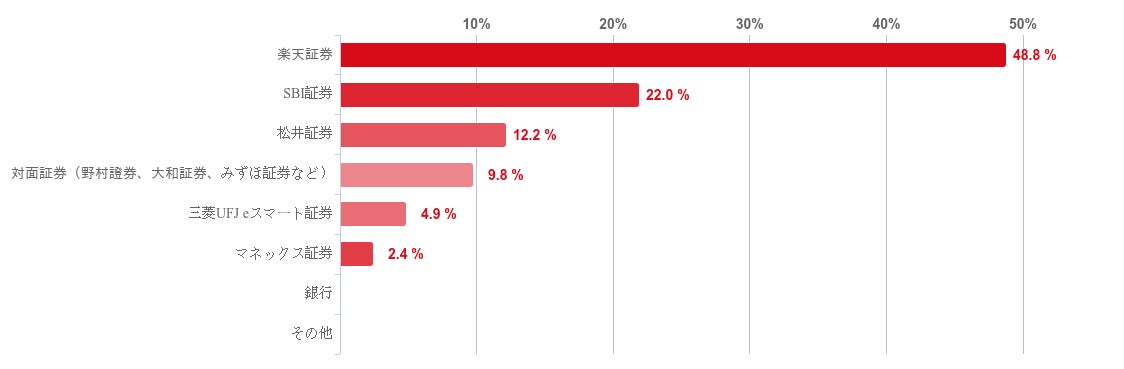 新NISA口座の開設先は「楽天証券」が最も多く約半数となり、次いで「SBI証券」「松井証券」の順だった。