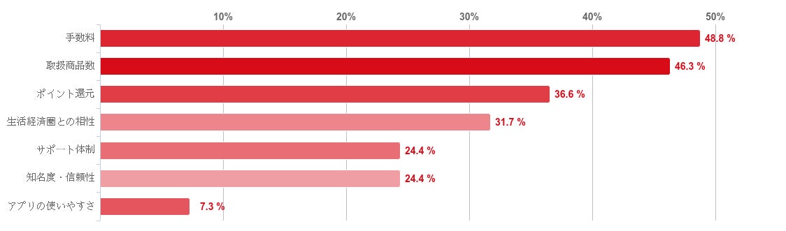 選定理由は「手数料」「取扱商品数」「ポイント還元」が上位を占めた。