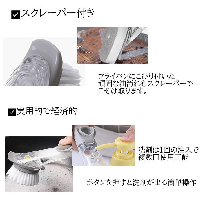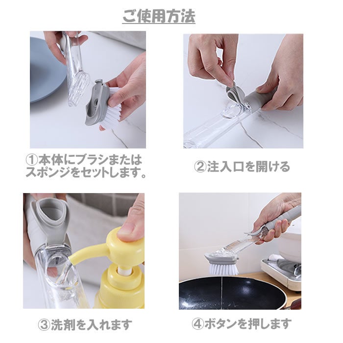 ワンプッシュで洗剤が出てくるので手を汚さず洗い物ができます♪