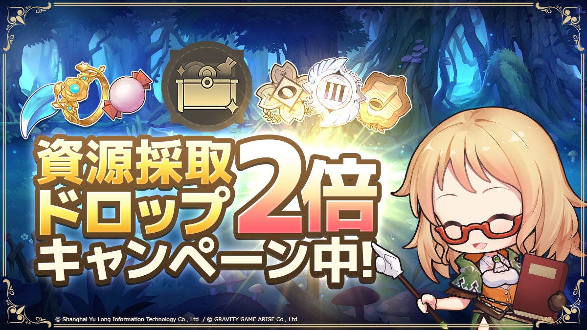 イベント期間中、「資源採取」クエストのアイテムドロップ数が2倍になります。