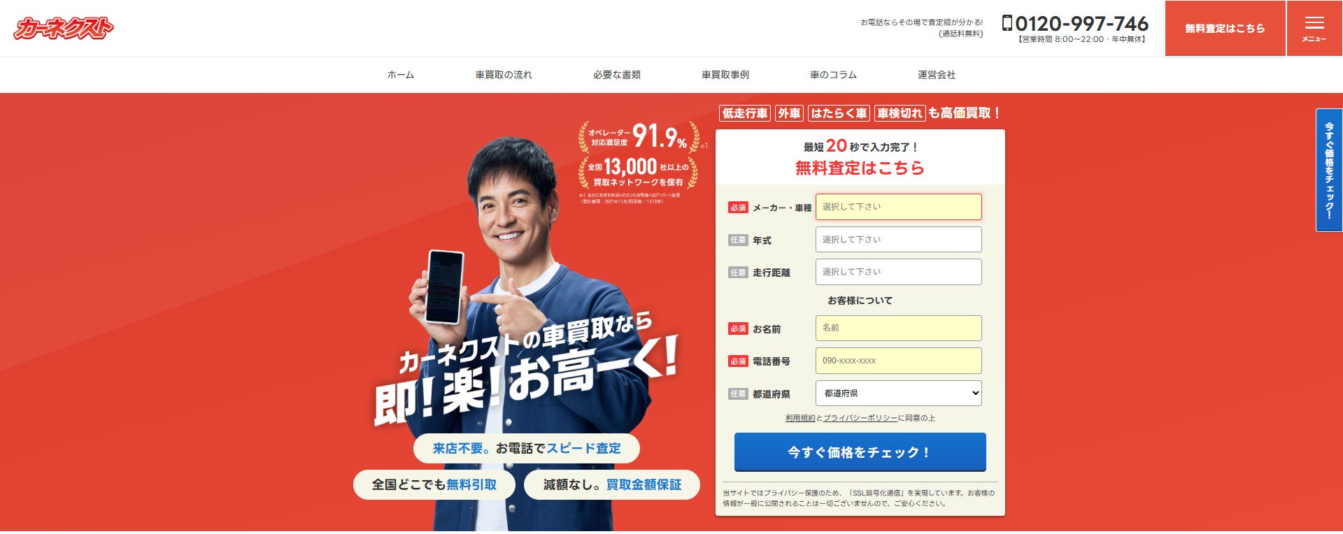 さらに、全国13,000社以上の販売ネットワークを活かし、車ごとに最適な売却先を選定できる点もカーネクストの特長です。
