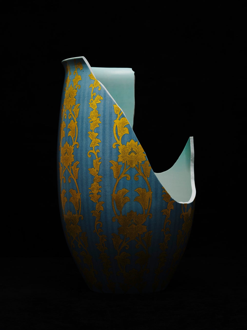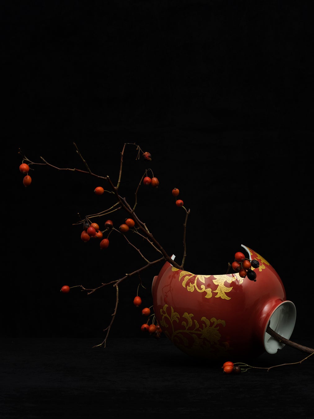 本展で展示される作品の中核を成すのは、石川県小松市に110年以上の歴史を持つ九谷焼の名窯「錦山窯」との特別なコラボレーションによる作品です。蓮井は地震によって破壊された「錦山窯」の陶磁器作品を撮影し、その中に宿る伝統工芸の普遍的な美と自然の不条理を鮮やかに写し取りました。