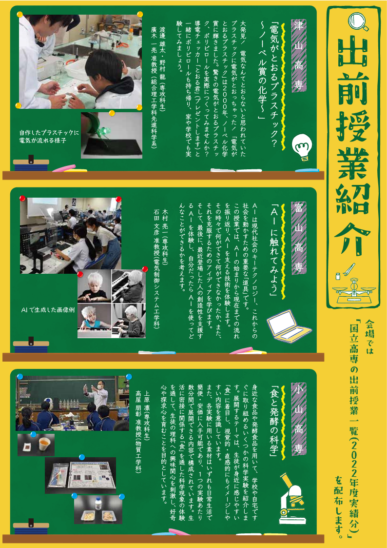 タイトル:小・中・高で理系好きを増やす高専のカガク~地域とのコラボでワクワクを広げる~