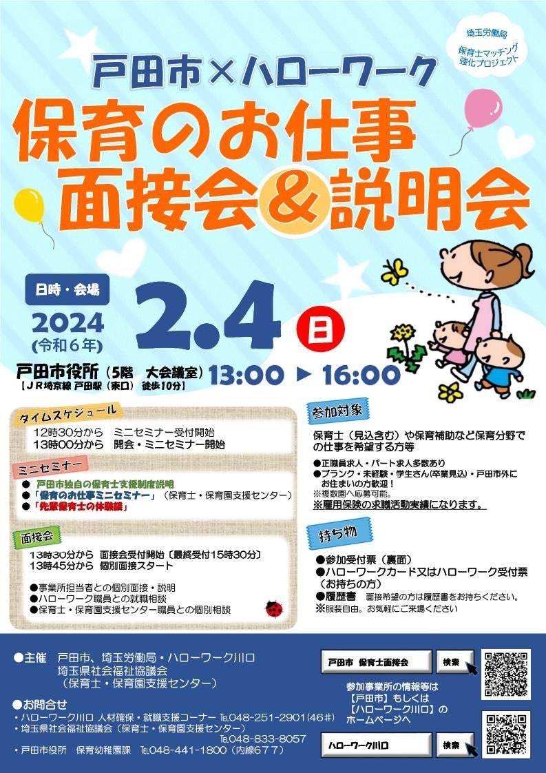 【埼玉県戸田市】「戸田市×ハローワーク 保育のお仕事面接会&説明会」を開催します