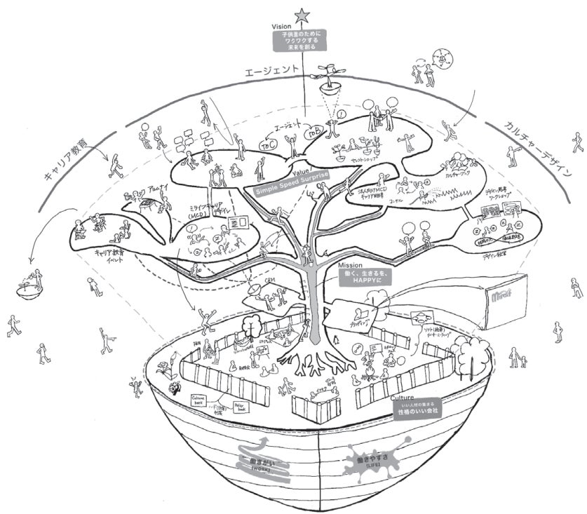 また、組織の取り組みの全体像を上手く社内外に伝える方法として、「ビジョンアート」(絵で表現すること)を提案しています。著者の会社で実際に活用しているビジョンアートについてお話ししながら、組織のカルチャーや取り組みをビジュアルで表現することのメリットについてもお伝えします。