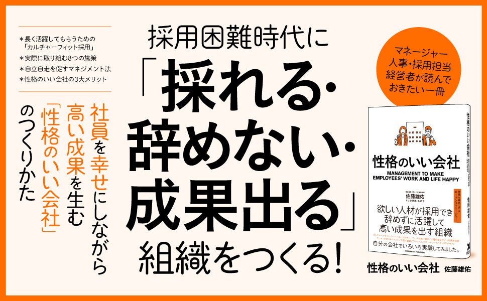 【人事・採用・マネージャー必読】「採れる・辞めない・成果出る」理想のチーム作りを実例とともに徹底解説。社員の幸せと高い成果を同時に手に入れる秘訣とは? 新刊『性格のいい会社』発売!