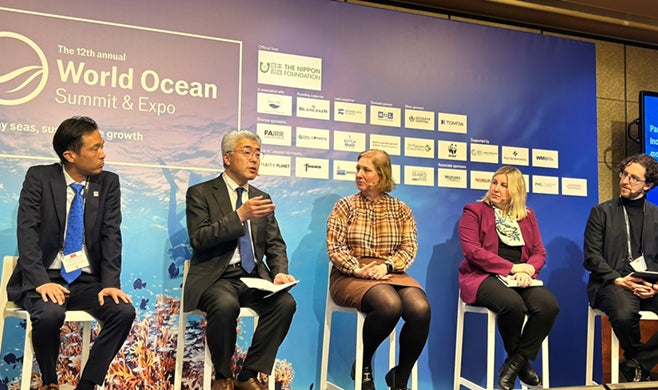 株式会社商船三井(代表取締役社長:橋本 剛、本社:東京都港区、以下「当社」)は、3月12日~13日に日本で初の開催となるEconomist Impact(註)主催World Ocean Summit & Expoにダイヤモンドスポンサーとして参加し、当社チーフ・サステナビリティ・オフィサーの渡邉と環境・サステナビリティ戦略部長の二宮がパネルディスカッションに登壇しました。