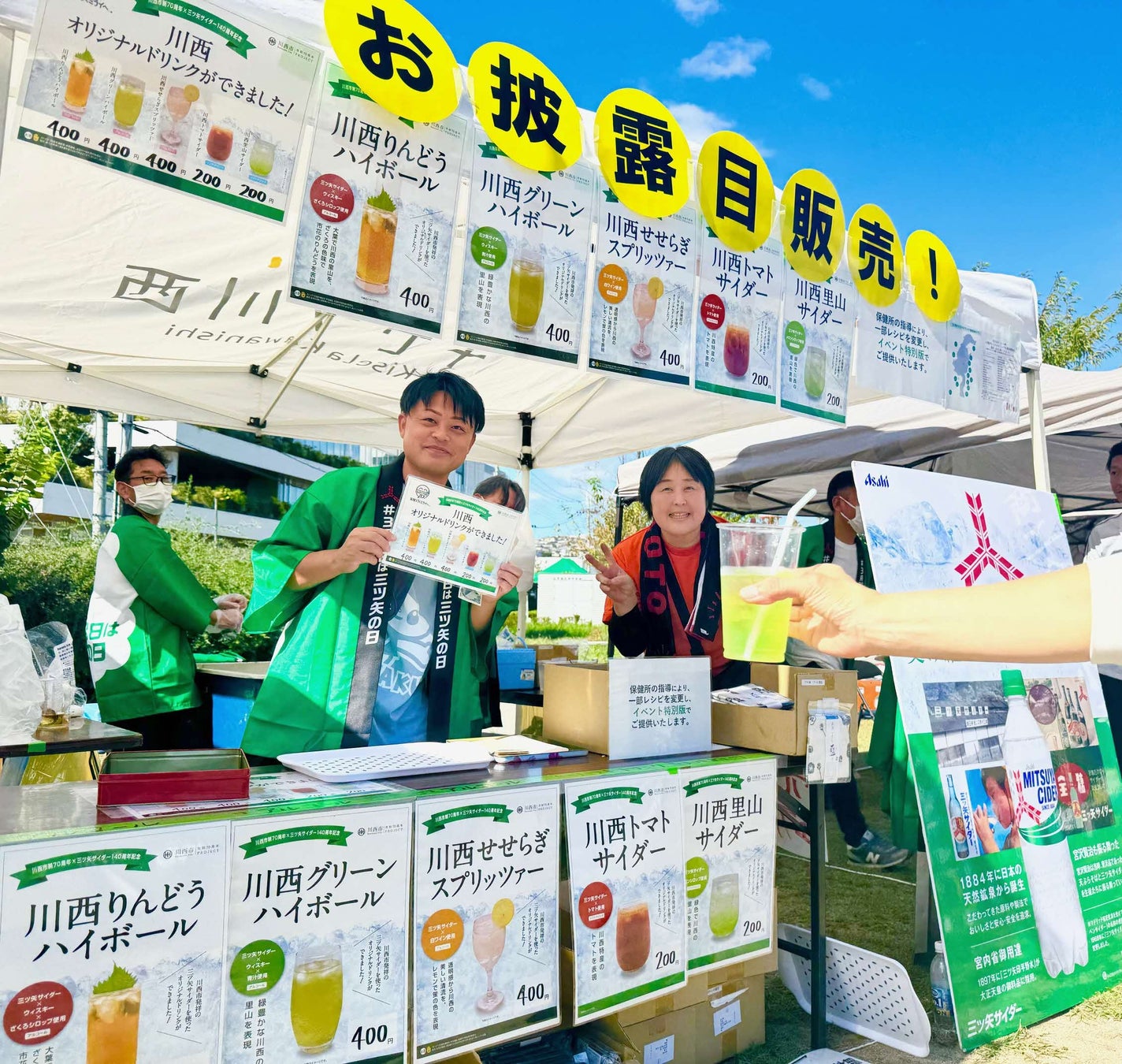 また、「市制70周年」と「三ツ矢サイダー140周年」のダブル周年であることを記念してアサヒ飲料株式会社近畿圏本部と協業して誕生した川西オリジナルドリンクが市商工会青年部・女性部によりお披露目販売され、会場では売り切れが出るほどの盛況ぶりでした。