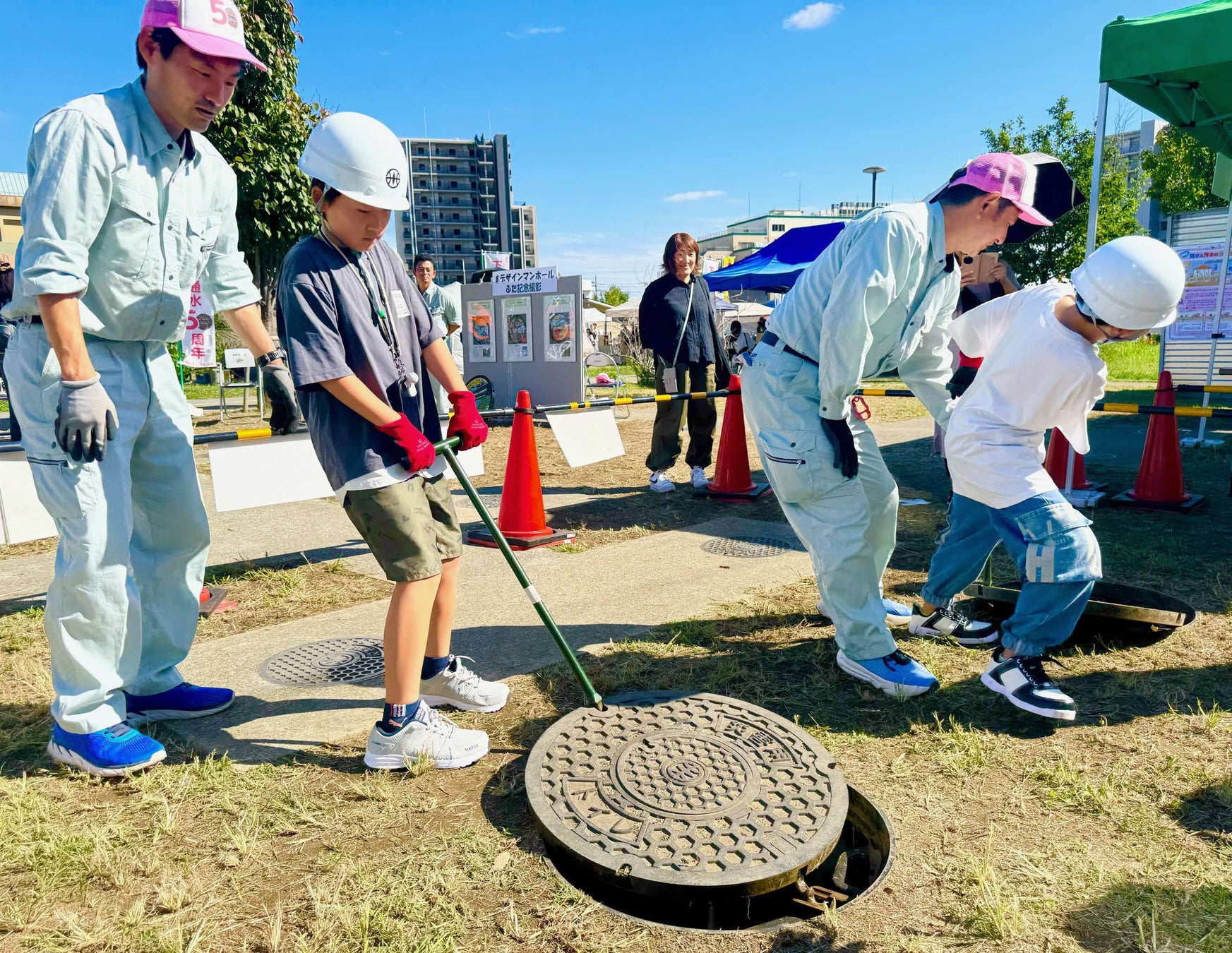 市上下水道局( 市の下水道通水50周年を記念したパネル展示や各種体験コーナー、デザインマンホールの展示 )