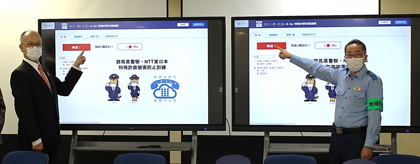 群馬県警察本部(本部長:小笠原 和美)と東日本電信電話株式会社 群馬支店(支店長:橋本 寿太郎、以下「NTT東日本」)は、特殊詐欺被害の撲滅に向けた「特殊詐欺被害防止訓練」の実証実験を実施しました。