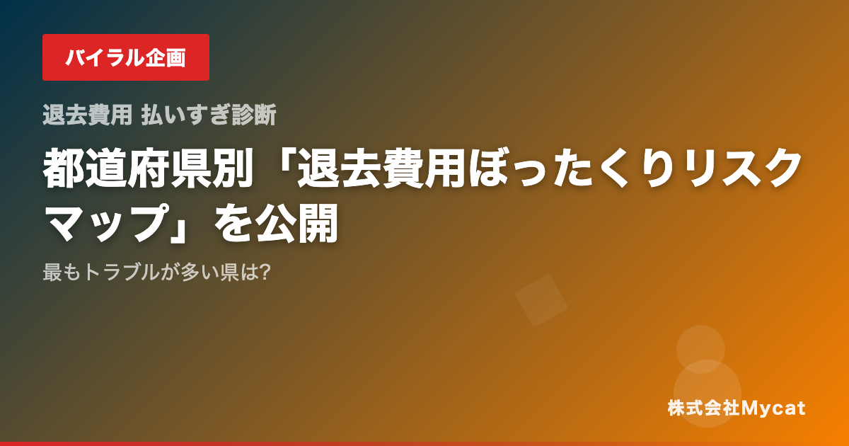 株式会社Mycat(本社:東京都目黒区)が運営する「退去費用 払いすぎ診断」(https://taikyo.xyz)は、都道府県別の退去費用トラブルリスクを可視化した「ぼったくりリスクマップ」を公開しました。
