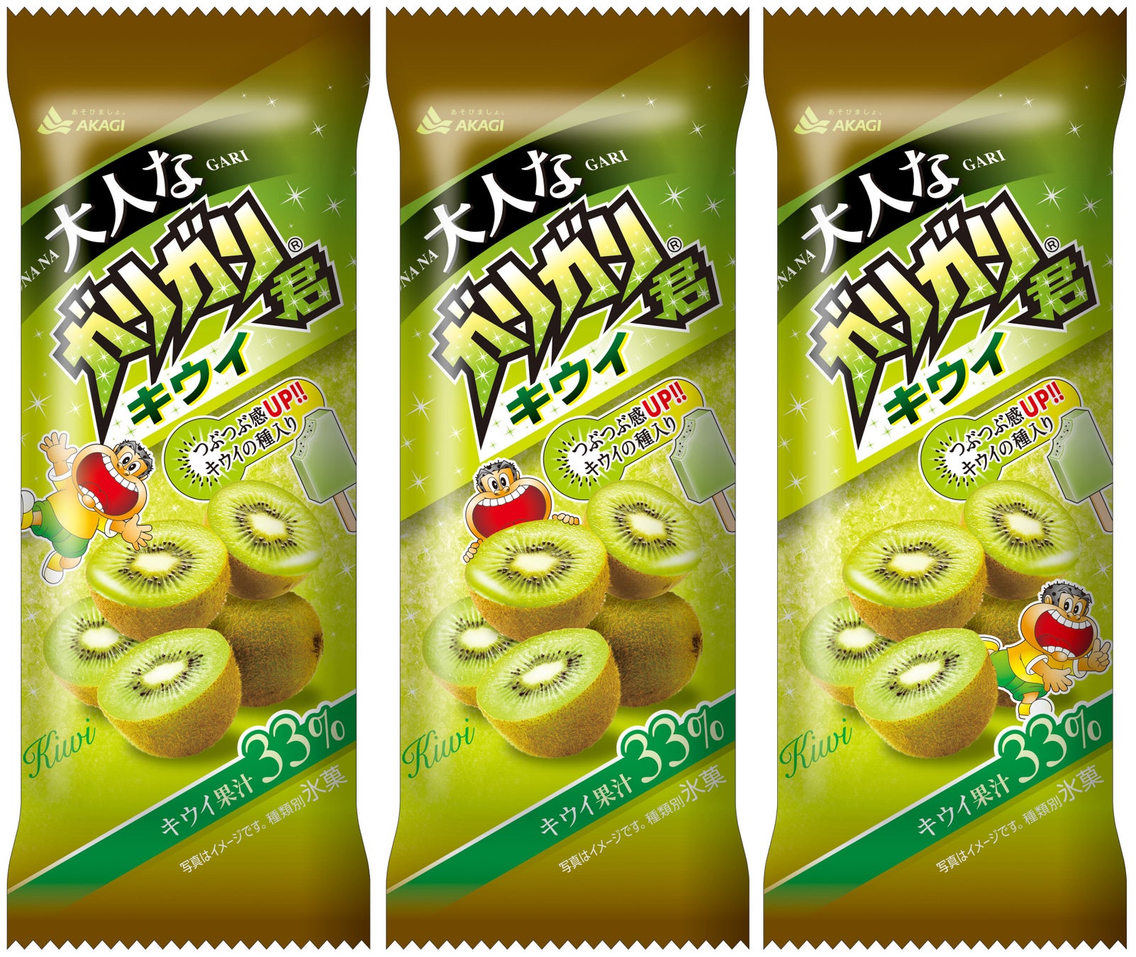 つぶつぶ~♪キウイの種30%増量!!キウイ果汁33%使用した本格的な美味しさ!「大人なガリガリ君キウイ」