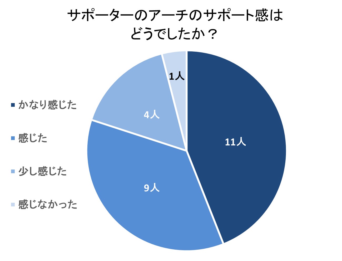 →「ヒール&アーチサポーター」を装着することで、25名の方が安心感や安定感を得られていた。