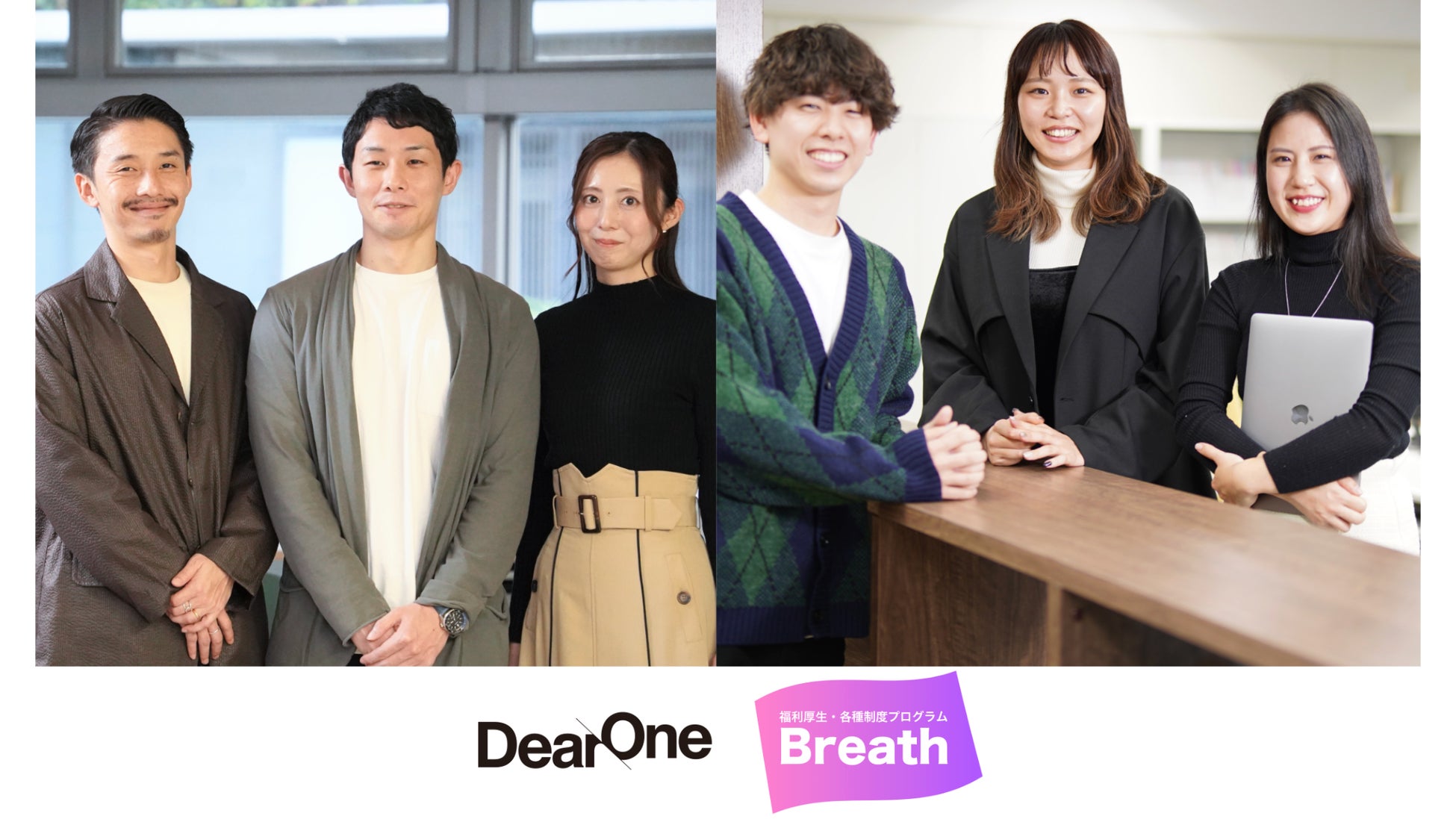 DearOneでは、これらの制度を福利厚生プログラム『Breath(ブレス)』に新たに加え従業員一人ひとりが能力を最大限に発揮し、長期的に活躍できる企業文化を醸成してまいります。