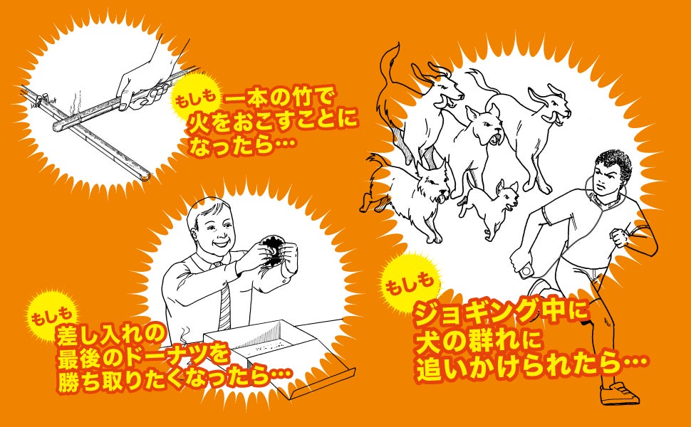 命にかかわる「もしも、まさか」の事態に対処する術をそれぞれの分野の専門家が完全監修した、ムダに実用性が高い1冊。シュールなイラストとまじめなレクチャーが化学変化を起こして、なぜだかちょっと笑えると評判のシリーズです。