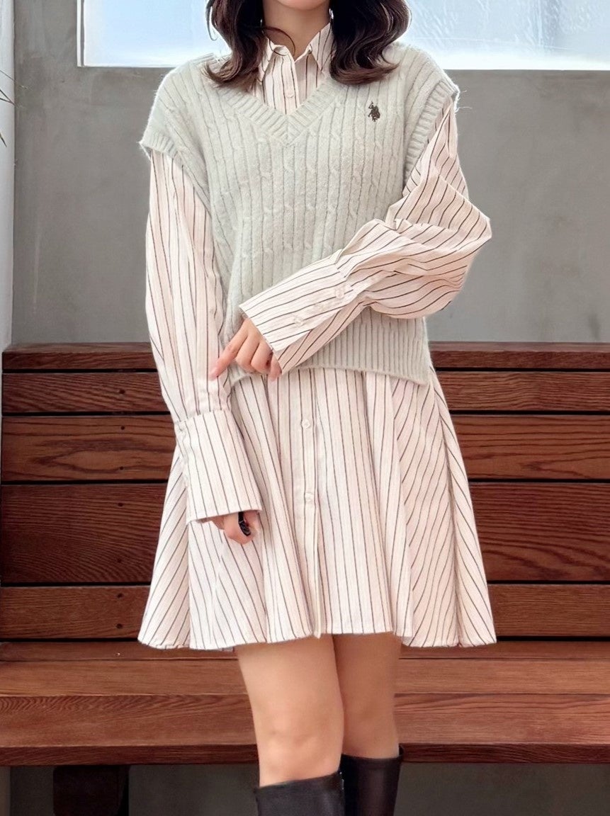 U.S. POLO ASSN.別注 ベストセットシャツミニワンピース