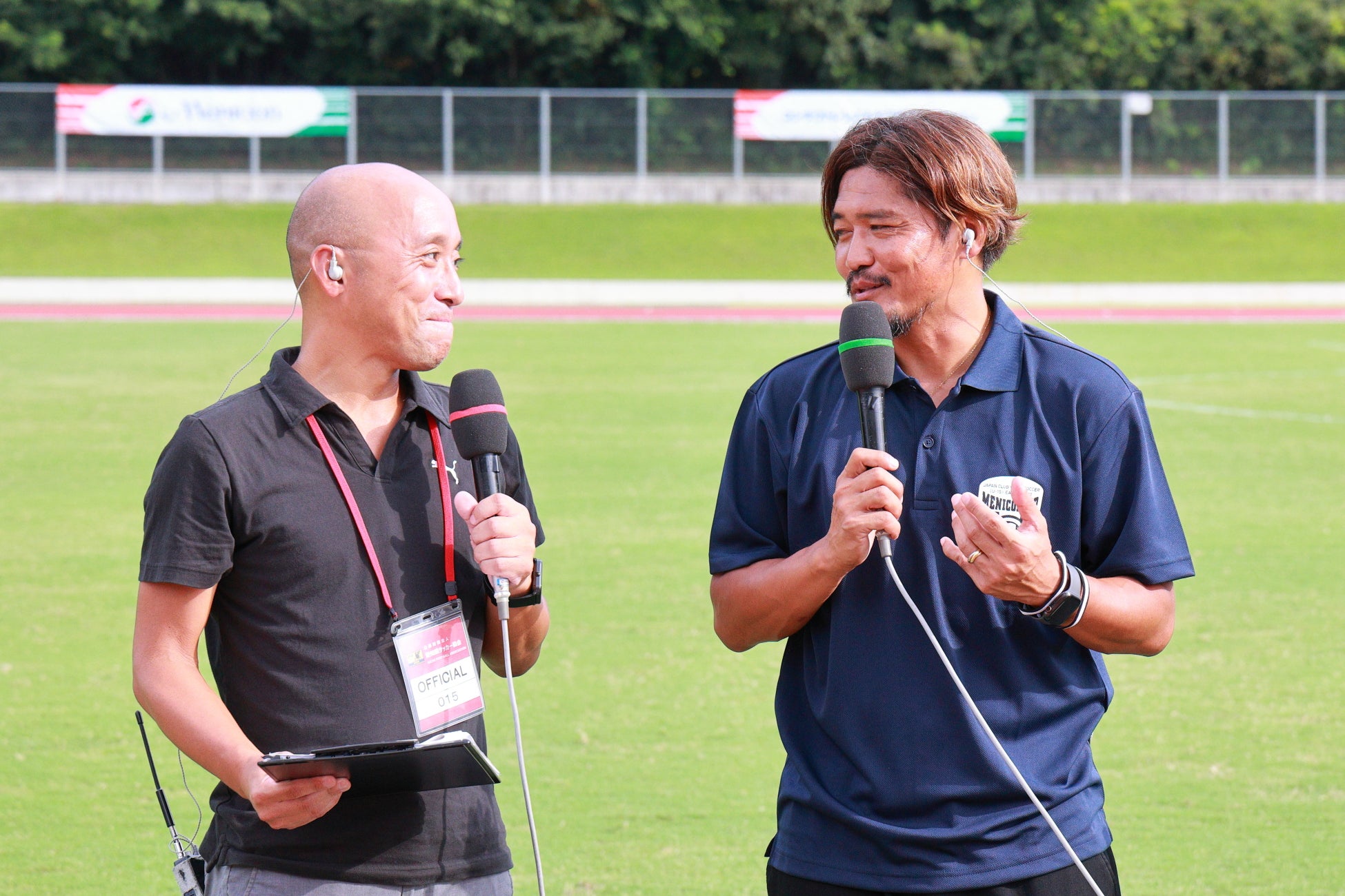 大会の特別ゲストとして、昨年に続き元サッカー日本代表であり、現在はサッカー解説やバラエティ番組などマルチに活躍中の大久保嘉人氏にご来場いただき、生中継の解説を行っていただくなど大会を盛り上げていただきました。試合後の表彰式では大会を振り返り、「選手の皆さんが非常にいいプレーを見せてくれました。このメニコンカップから日本代表になる選手が絶対に出てくると思いますので、ぜひ皆さんも選手たちを応援していきましょう。」とのメッセージをいただきました。