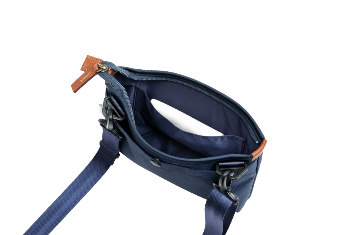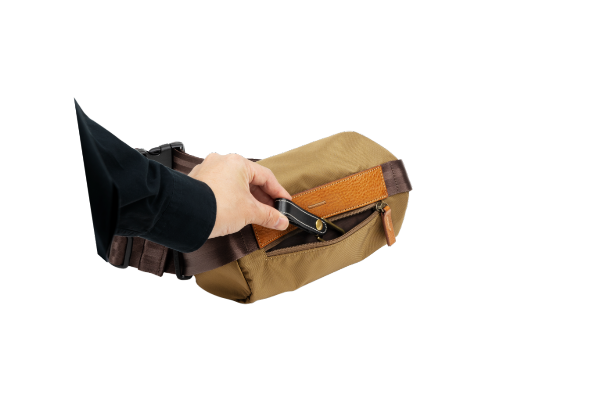日常使いに加え、旅先での街歩きやフェス、グランピングなどにも。手荷物をアクティブに持ち歩けるコンパクトな鞄です。両サイドのマチが広がるので、荷物の量によってくしゃっとつぶしたり、ころっと膨らませたりと、さまざまな表情を楽しめます。